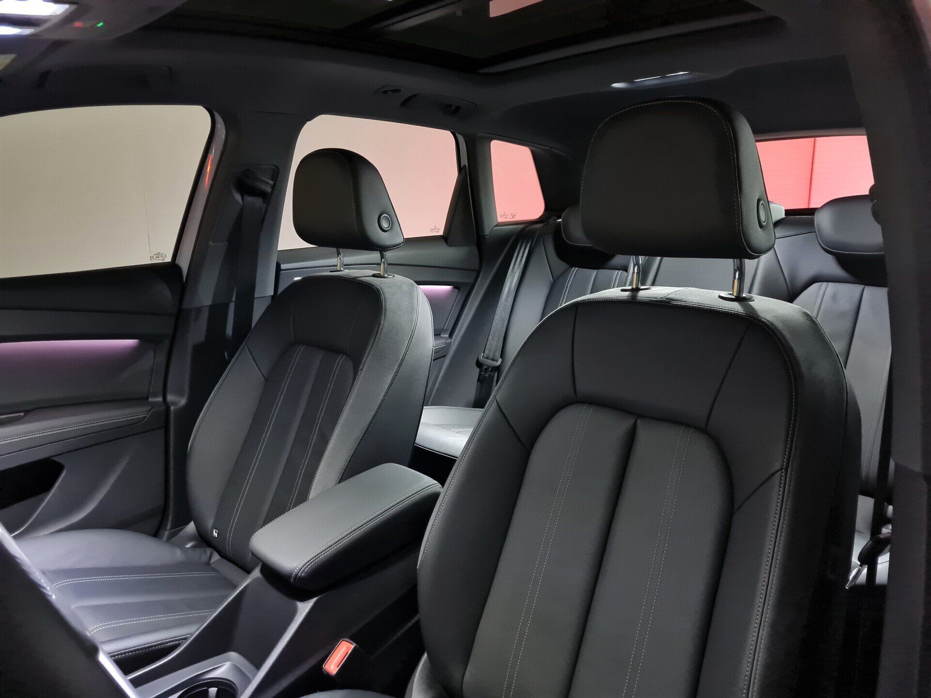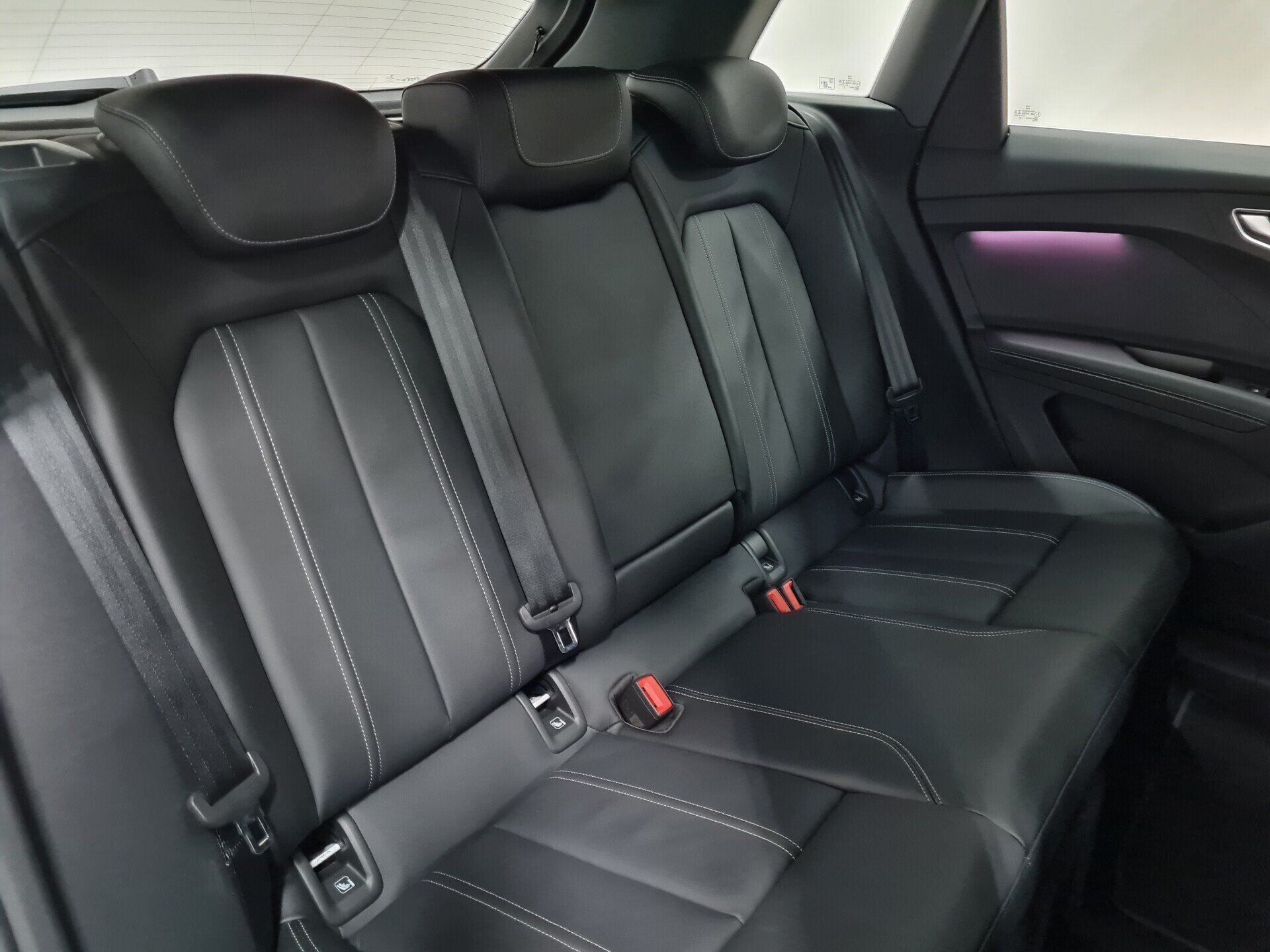 Interieur met standaardstoelen en zwart leder/kunstleder