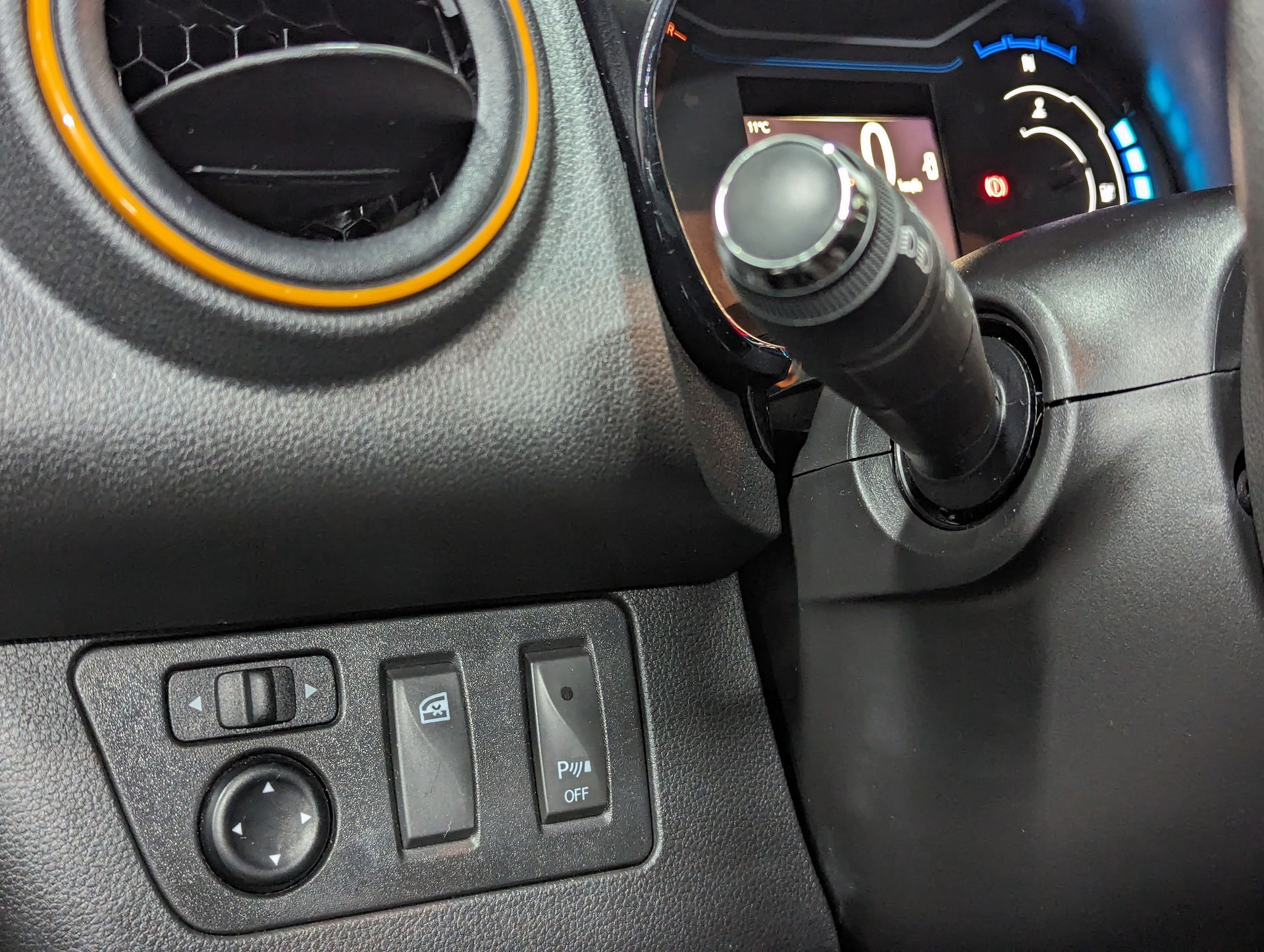 Omlijsting ventilatieroosters en middenconsole in oranje