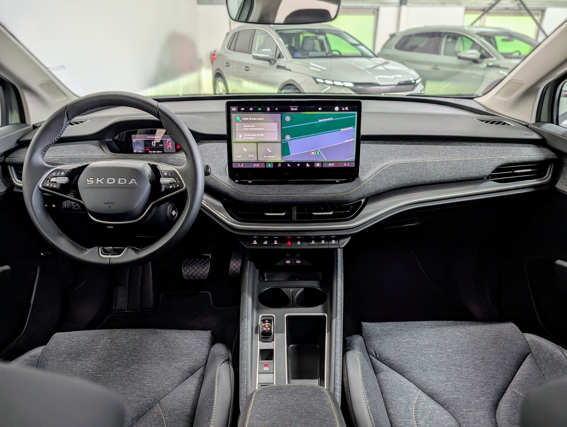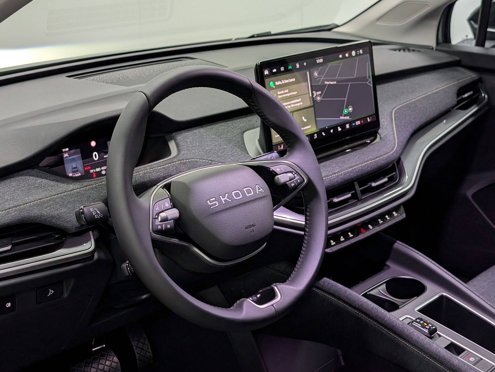 Deze luxe Skoda Elroq 85, uitgevoerd in de stijlvolle kleur Timiano Green, is voorzien van het grote 85 accupakket, goed voor een WLTP actieradius van 566 km en 286 pk. Geniet van talloze opties zoals 20-inch velgen, een warmtepomp, het Business Upgrade Pakket Plus, het Winterpakket en het Transport pakket. Opladen gaat razendsnel: met 175 kW snelladen is de auto in slechts 28 minuten (10-80%) vol, en AC-laden kan met 11 kW.