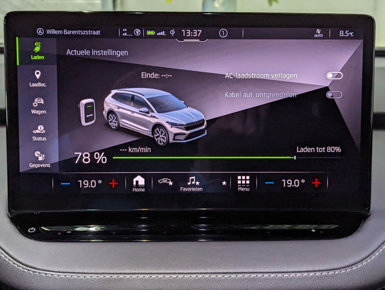 De auto is voorzien van een 3-fasen lader waarmee de auto met 11 kW laadvermogen kan laden. Naast het laden aan een normaal stopcontact of een laadpaal is het ook mogelijk om deze Enyaq aan een snellader op te laden met tot wel 50 kW vermogen.