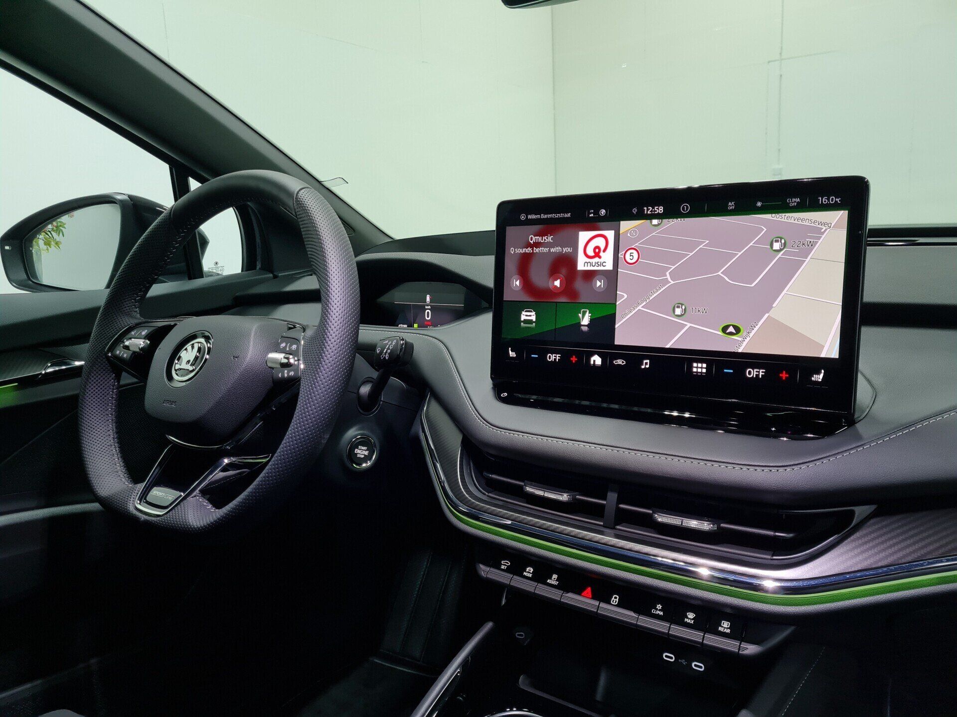 Deze Skoda Enyaq 80 is uitgevoerd in Sportline uitvoering waardoor hij beschikt over vele opties en een sportief uiterlijk. De Skoda beschikt over het grote 80 accupakket waarmee de auto een WLTP gemeten actieradius haalt van 537 km. De krachtige elektromotor levert een maximumvermogen van 204 pk (150 kW) en 310 Nm. Hiermee sprint de auto in 8,6 seconden van 0 naar 100 km/uur.