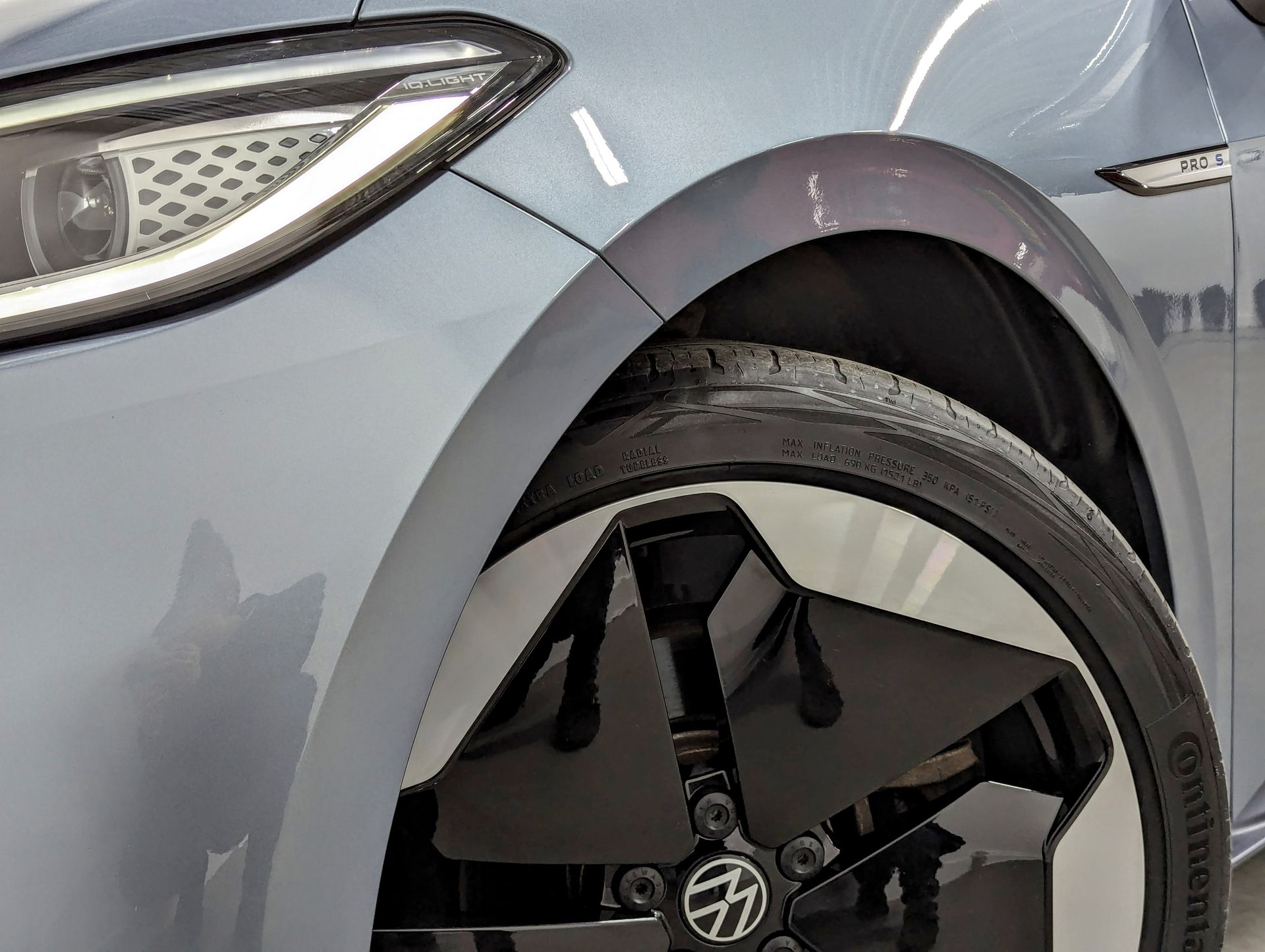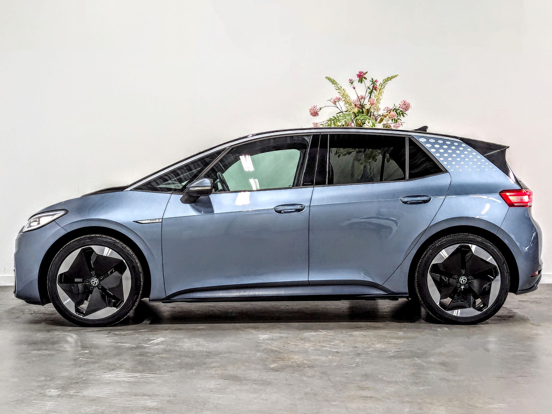 Deze Volkswagen ID.3 Pro S met 77 kWh is zeer compleet uitgevoerd en heeft de kleur Stonewashed Blue Metallic met zwart dak. De auto beschikt over het 82 kWh (77 kWh bruikbaar) accupakket waarmee de auto een WLTP gemeten actieradius haalt van 532 km. De krachtige elektromotor levert een maximumvermogen van 204 pk (150 kW). Hiermee sprint de auto in 7,9 seconden van 0 naar 100 km/uur.