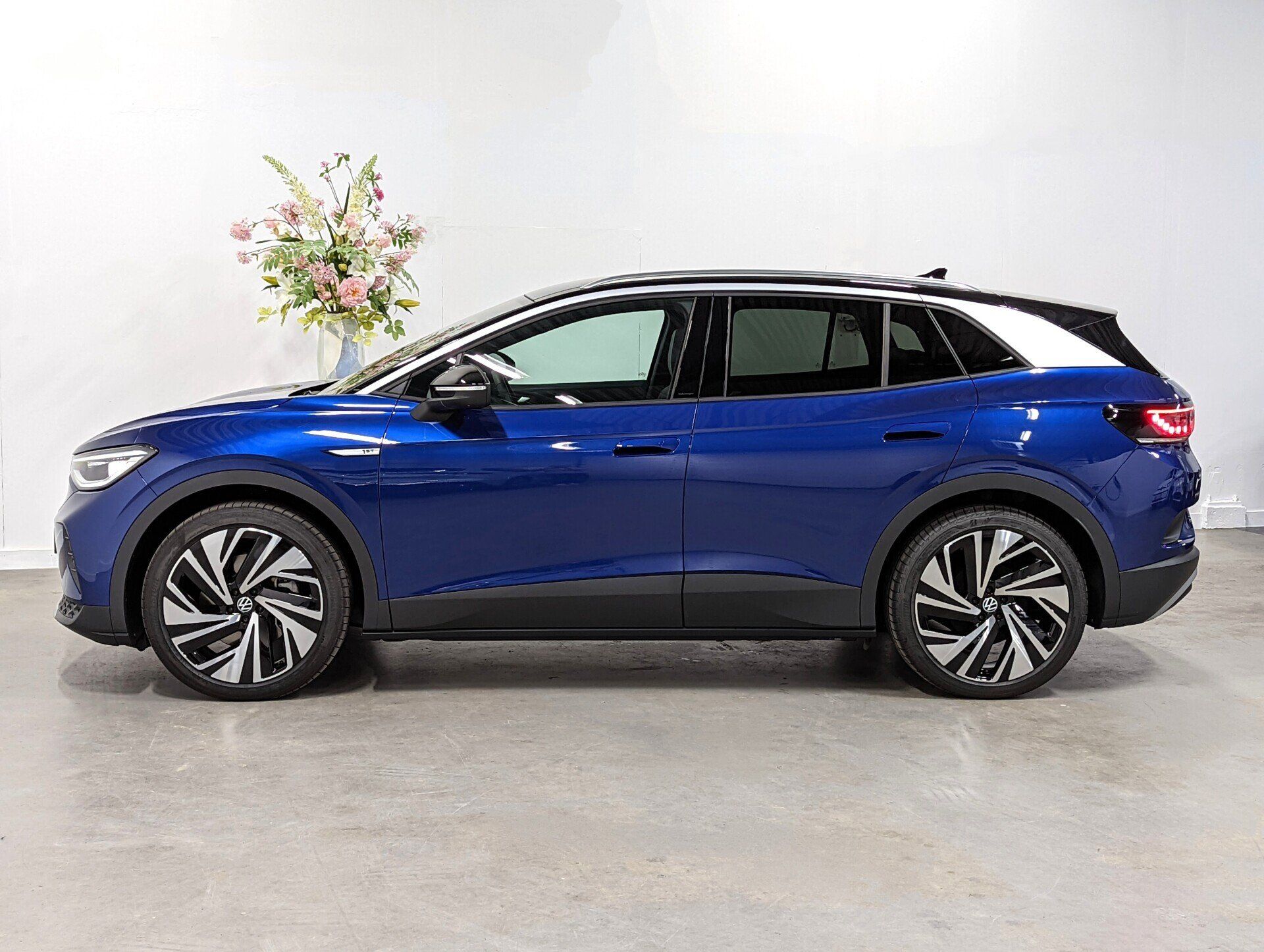 Deze Volkswagen ID.4 is zeer compleet uitgevoerd als 1st Max uitvoering in de kleur Blue Dusk Metallic. De auto beschikt over het grote 77 kWh accupakket waarmee de auto een WLTP gemeten actieradius haalt van 492 km. De krachtige elektromotor levert een maximumvermogen van 204 pk (150 kW). Hiermee sprint de auto in 8,5 seconden van 0 naar 100 km/uur.